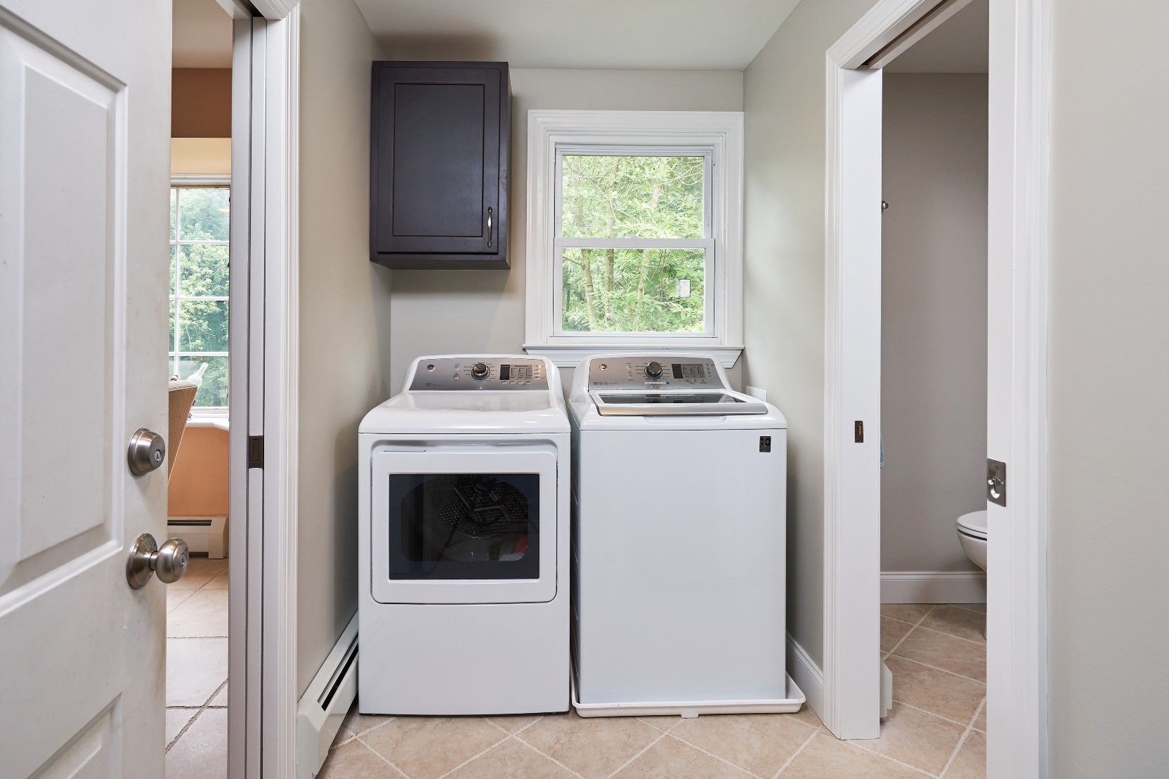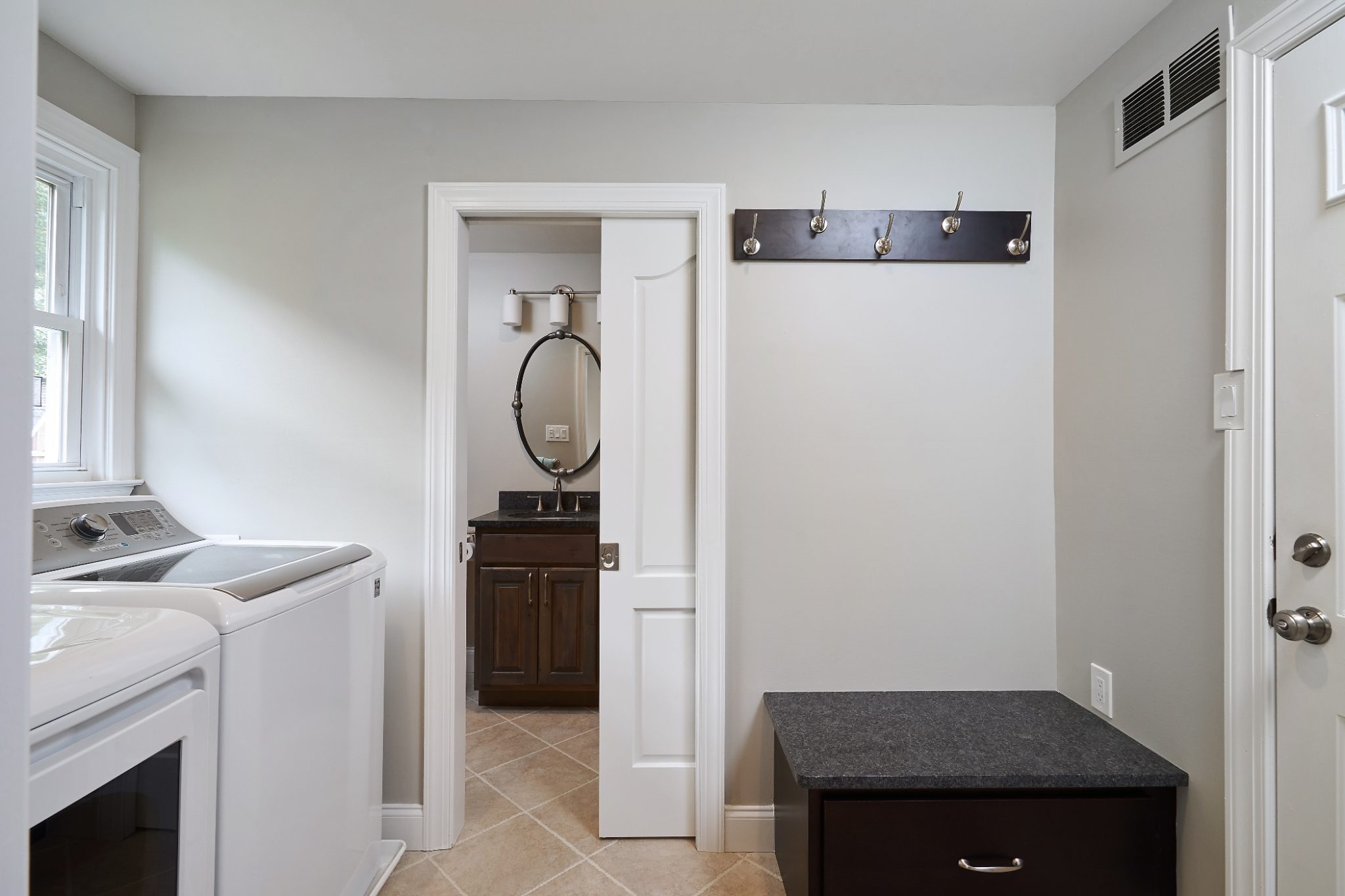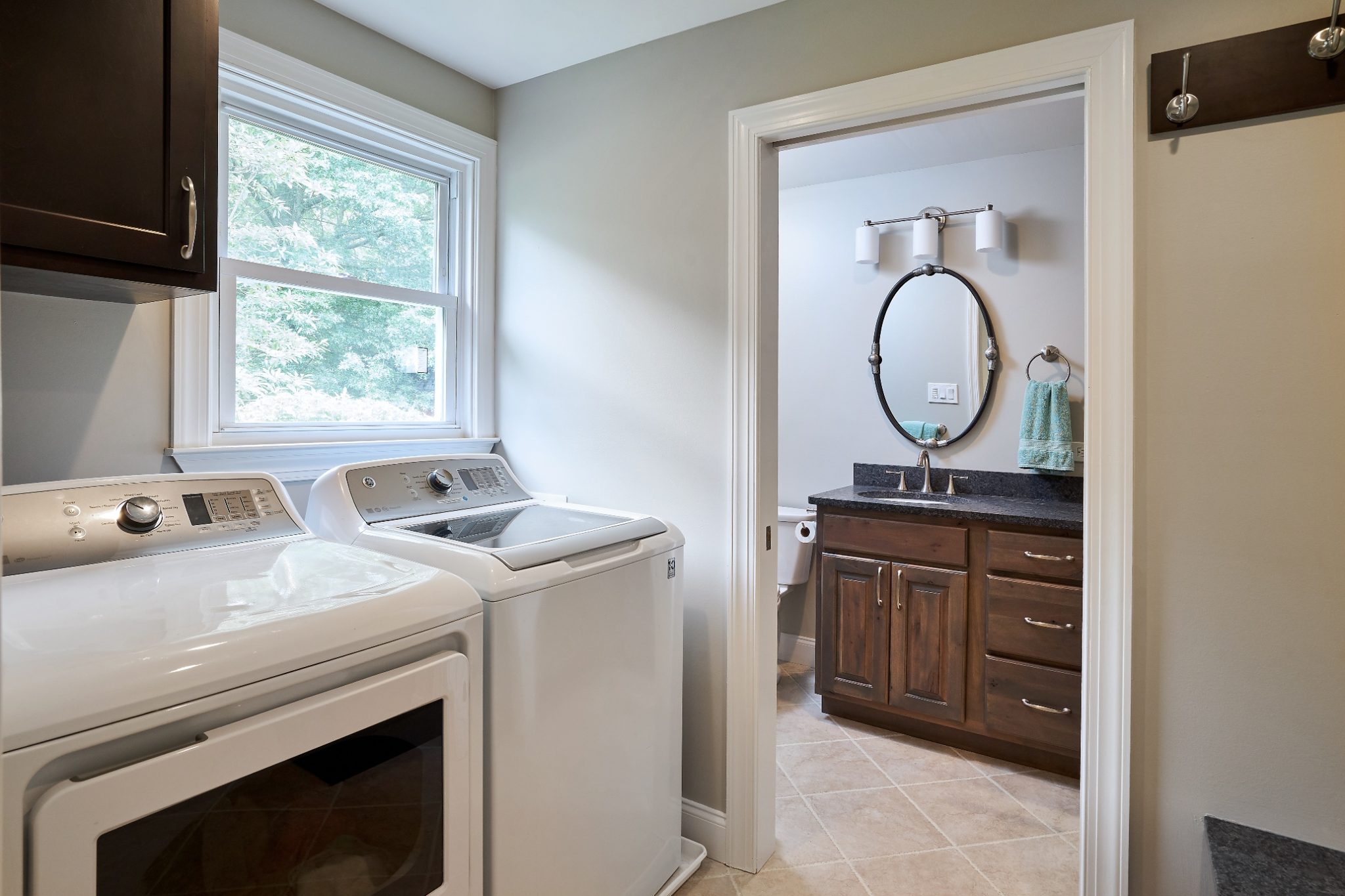 Inviting Laundry Area with Earthy Tones and Functional Layout